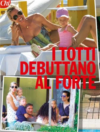 Fisico statuario, muscoli d'acciaio e aria rilassata accanto alla sua dolce metà, sexy, affascinante con un monokini da brivido. In Versilia vanno in scena i Totti. Capitan Francesco insieme alla moglie Ilary Blasi e ai figli Chanel e Cristian, come mostrano le foto del settimanale Chi, si sono rifugiati a Forte dei Marmi per qualche giorno di vacanza tra tuffi, passeggiate e qualche salto alla Capannina.